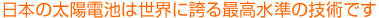 他にも、夏場の2階の温度が下がる、屋根材の劣化が少なくなるなどメリットいっぱいです。 日本の太陽電池は、世界に誇る最高水準の技術です。安心してご使用いただけます。さんさんとふりそそぐ太陽の光を電気に変えて使えるなんてとても素敵なことですね。